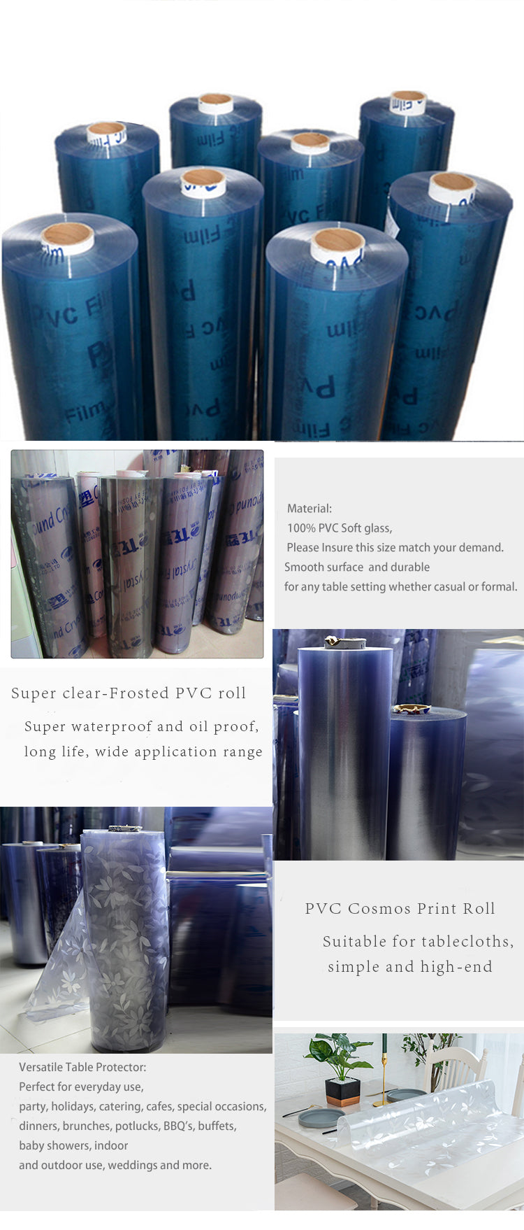 Rollo de PVC súper transparente de lámina de plástico de película de PVC de cristal