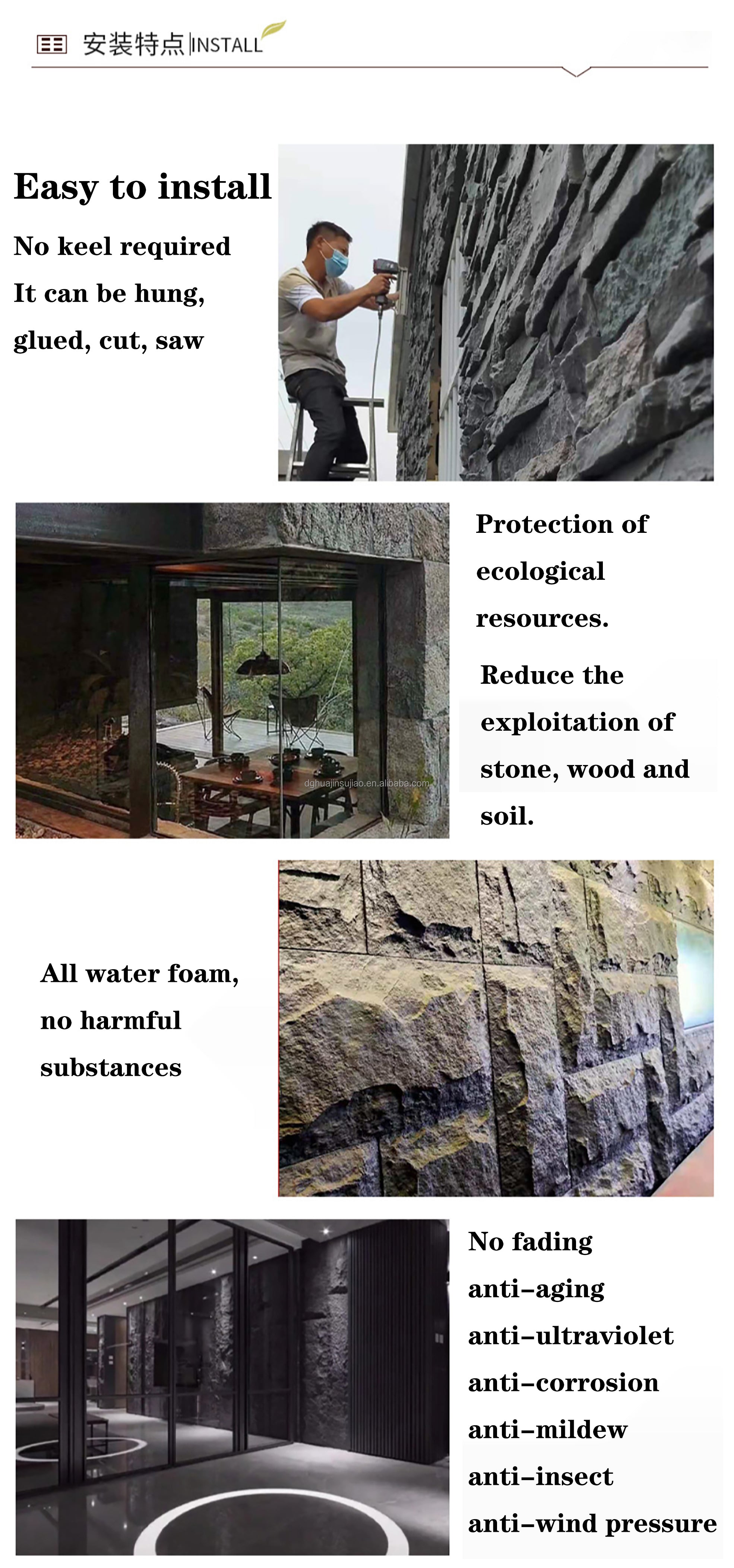 Decoración de jardín, pared exterior, decoración de escaparate, paneles de imitación de piedra