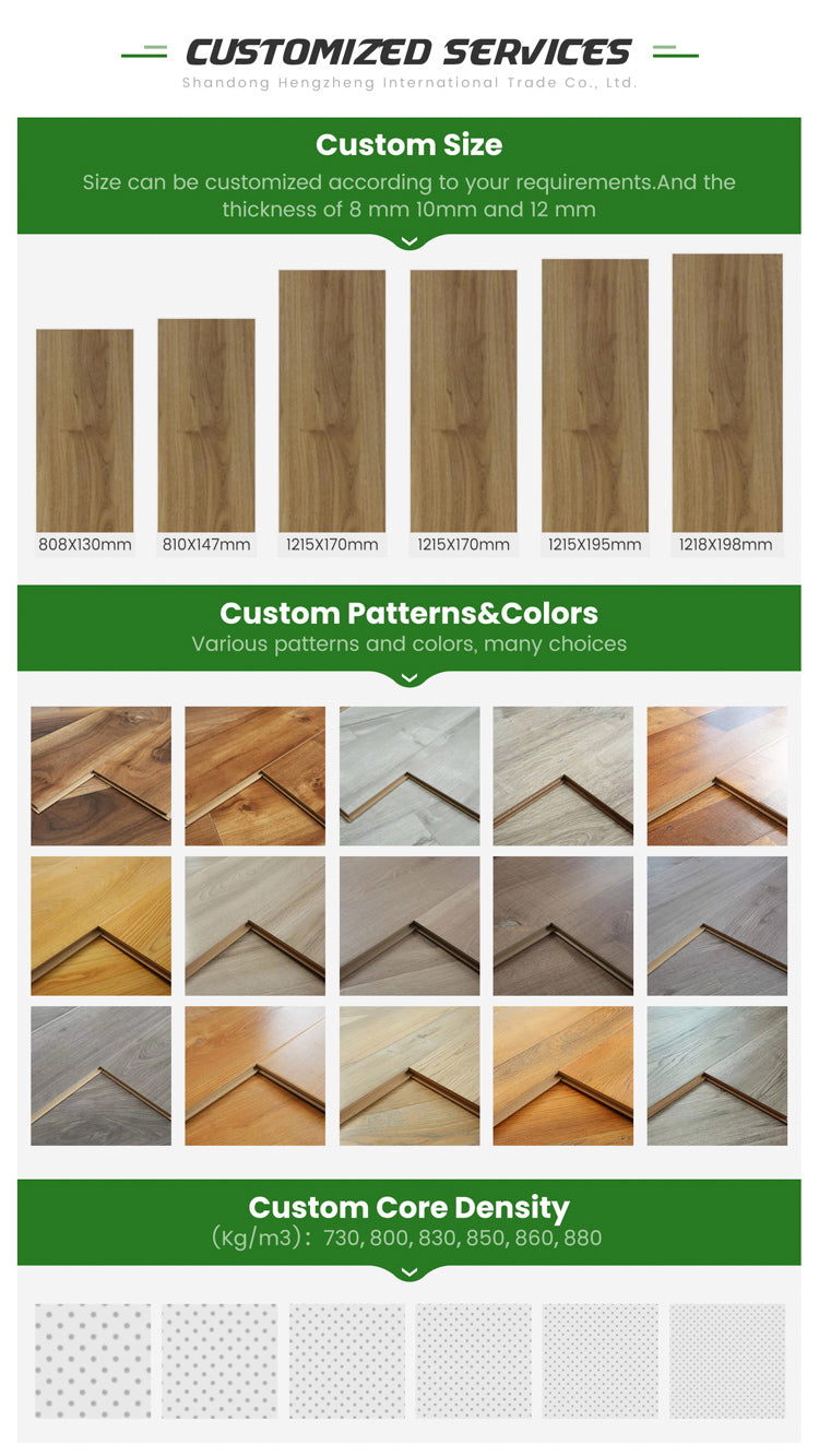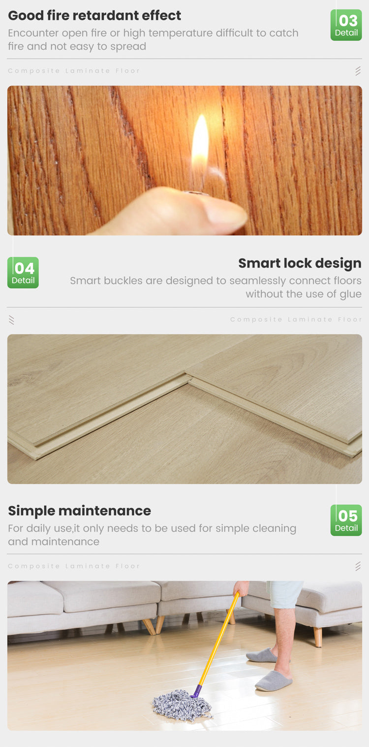 Piso laminado de alta calidad con cerradura de clic de 10-12 mm Suelo laminado de ingeniería