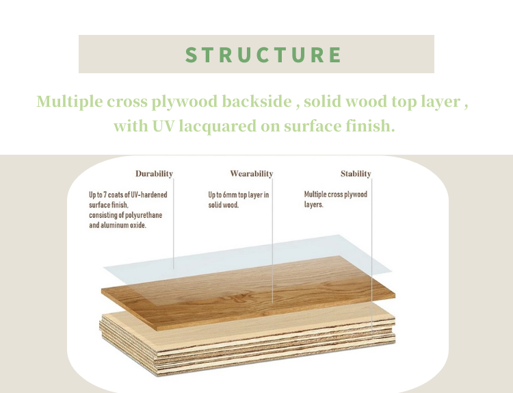 Suelo de madera de roble lacado UV cepillado ligero para uso residencial