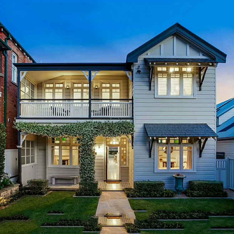 Casa prefabricada de dos pisos prefabricada de lujo con estructura de marco de acero ligero