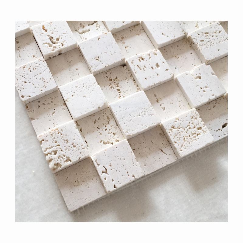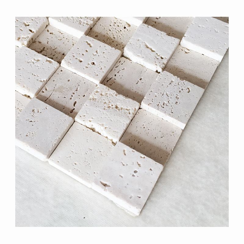 Decoración de azulejos de pared Azulejo de pared de piedra natural Azulejos 3D Mármol travertino beige claro Mosaicos de fondo del cubo de Rubik