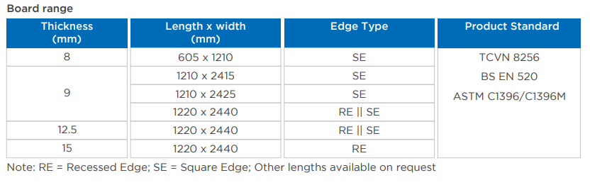 + Aplicación principal: para uso junto con techos y paredes internos. + Color del tablero: papel frontal marfil y papel reverso marrón.