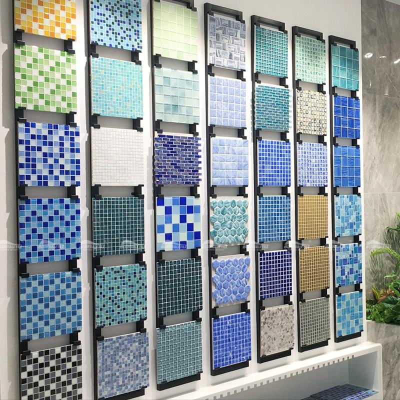 Bluwhale Tile One Stop Pool Supplier Foshan Factory Price Bathroom Square Mix Color Blue Swimming Pool Crystal Mosaic Glass Tile