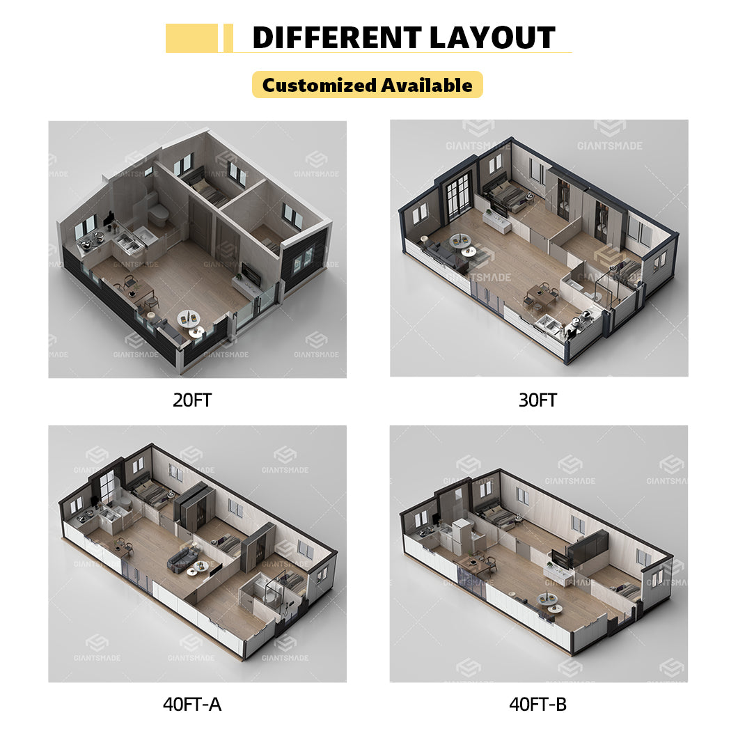 Складной дом с двойным крылом является одним из самых продаваемых контейнерных домов. Поскольку планировка 1-3 спален в расширяемом контейнерном доме не является обязательной, ее можно настроить в соответствии с вашими требованиями.