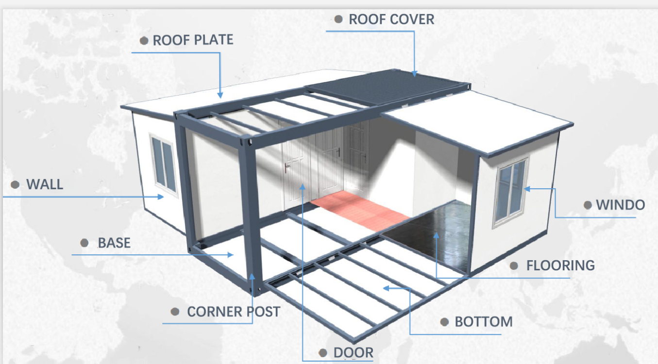 5. Разнообразные спецификации: Наш дизайн может быть настроен по индивидуальному заказу. Двери, окна, передняя и задняя стены могут быть заменены друг другом.