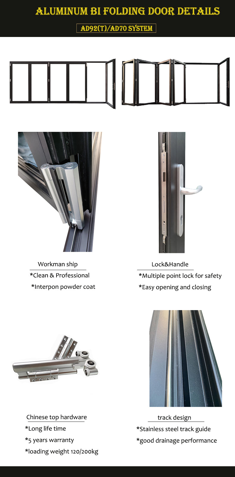 Алюминиевая балконная складная дверь с прозрачным стеклом.